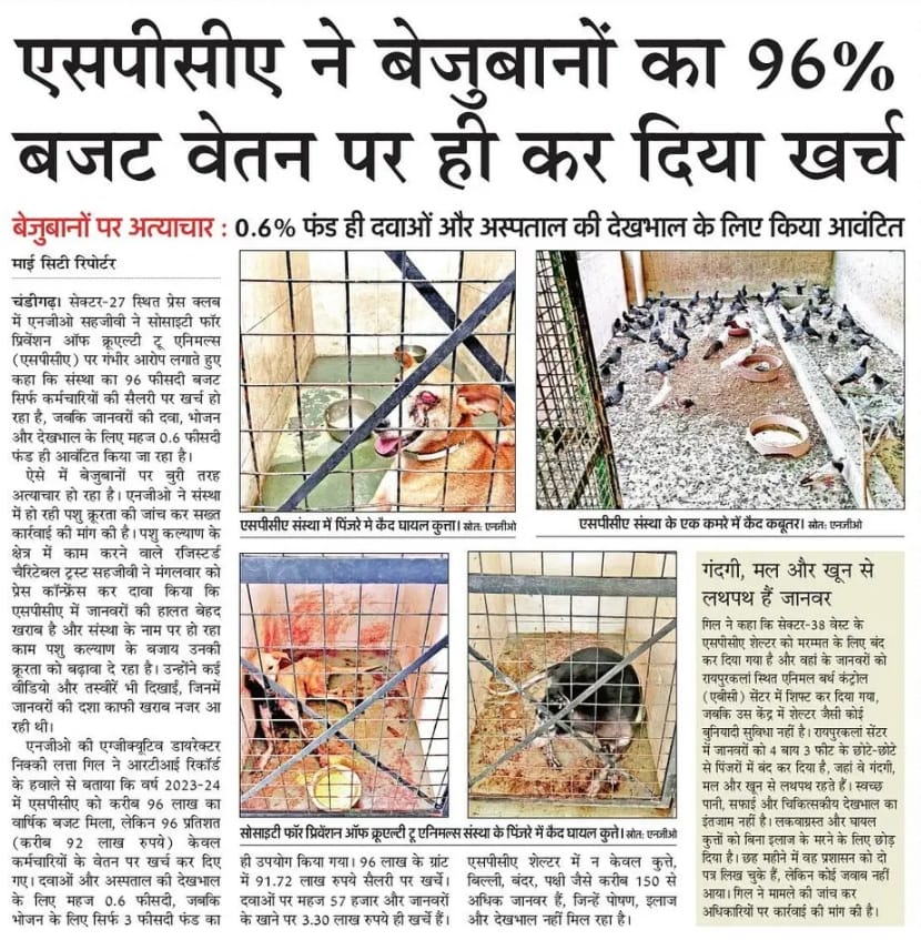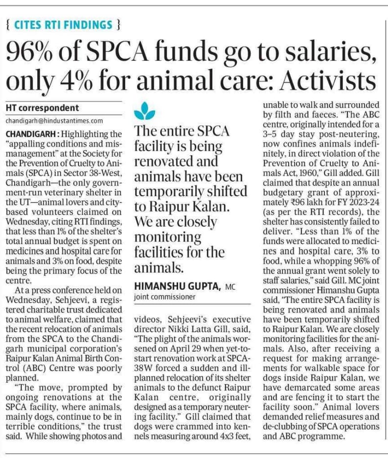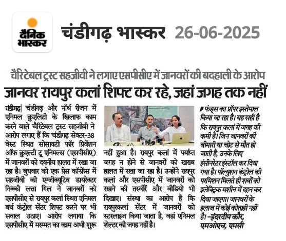 Sehjeevi Trust held a press conference at Chandigarh Press Club on June 25, 2025, and brought to light the appalling conditions of animals and systemic mismanagement at the Society for Prevention of Cruelty to Animals (SPCA) located in Sector 38 West, Chandigarh, the only government-run veterinary shelter in the UT.