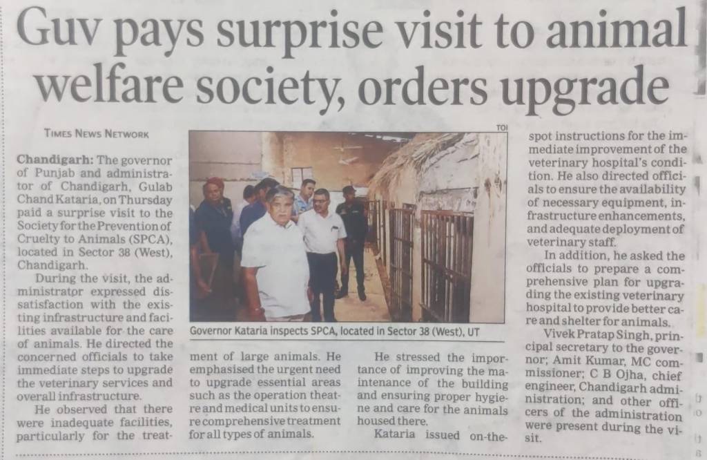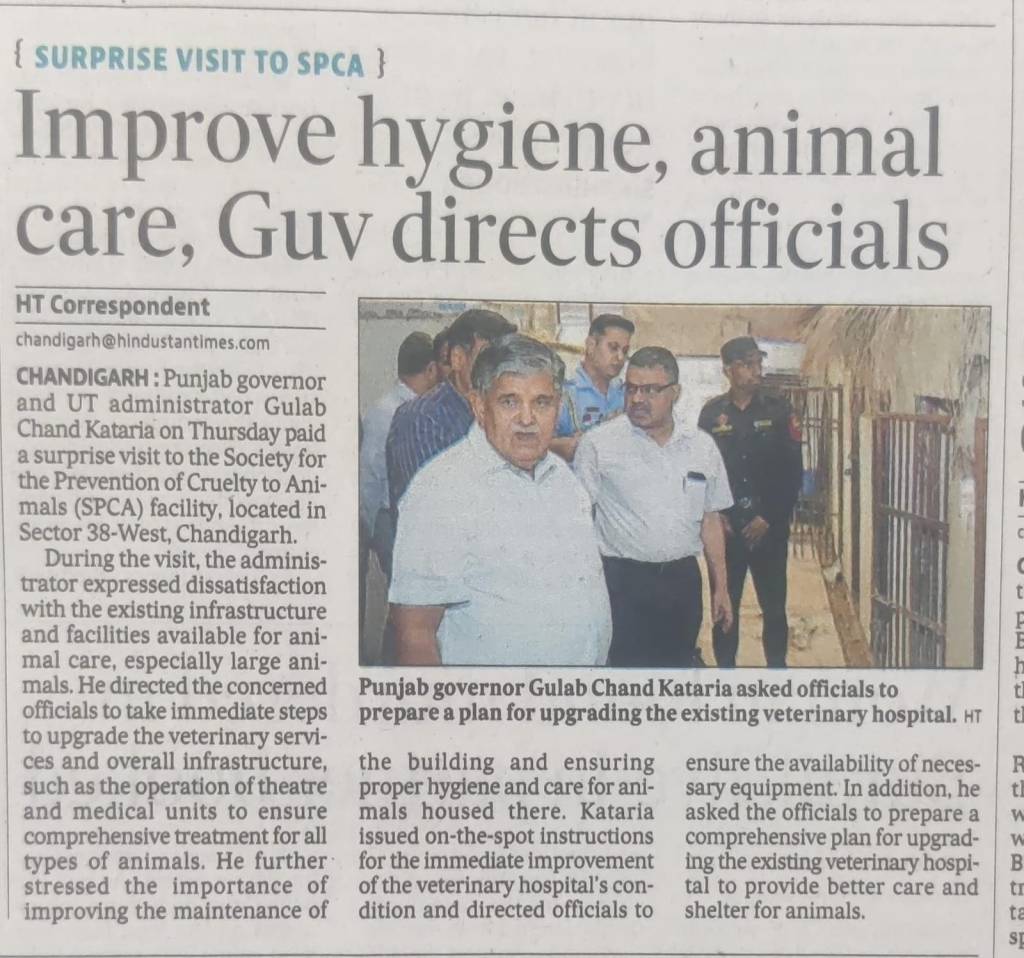 Notably, on the day following the press conference, the Hon’ble Governor of Punjab and Administrator of Chandigarh, Sh. Gulab Chand Kataria paid a surprise visit to SPCA in Sector 38 and stated his unhappiness and dissatisfaction with the condition of veterinary services at the facility.